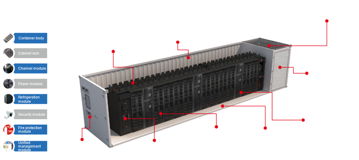 | 20 feet | 5 | 1 | 1 | 12.5kW*2 | Rack Mount | Hot and Cold channel | Access Camera | No pipe network gas | Standard |