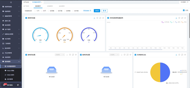能效管理數(shù)據(jù)中心能源管理主要作為整體機(jī)房能耗評(píng)估的重要依據(jù),為實(shí)現(xiàn)機(jī)房?jī)?nèi)的能源管理、能源分配、能耗計(jì)算、能源節(jié)約的指標(biāo)化。完善機(jī)房能源基礎(chǔ)數(shù)據(jù)體系,為用戶建立一套科學(xué)完善的能源利用監(jiān)督、管理、評(píng)價(jià)體系,包括能源設(shè)備管理、能耗值計(jì)算、能耗報(bào)表、預(yù)測(cè)分析等。